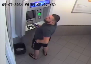 Widoczny na zdjęciu mężczyzna uzyskał dostęp do bankowości elektronicznej pokrzywdzonej i wypłacił gotówkę z bankomatu w Pniewach (woj. wielkopolskie) przy ulicy Targowej. Do przestępstwa doszło w dniu 9 lipca br.